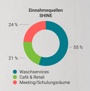 Doppelte Einnahmequellen: Waschservices + ergänzende Umsätze (Café, Retail, Meeting-/Schulungsräume).